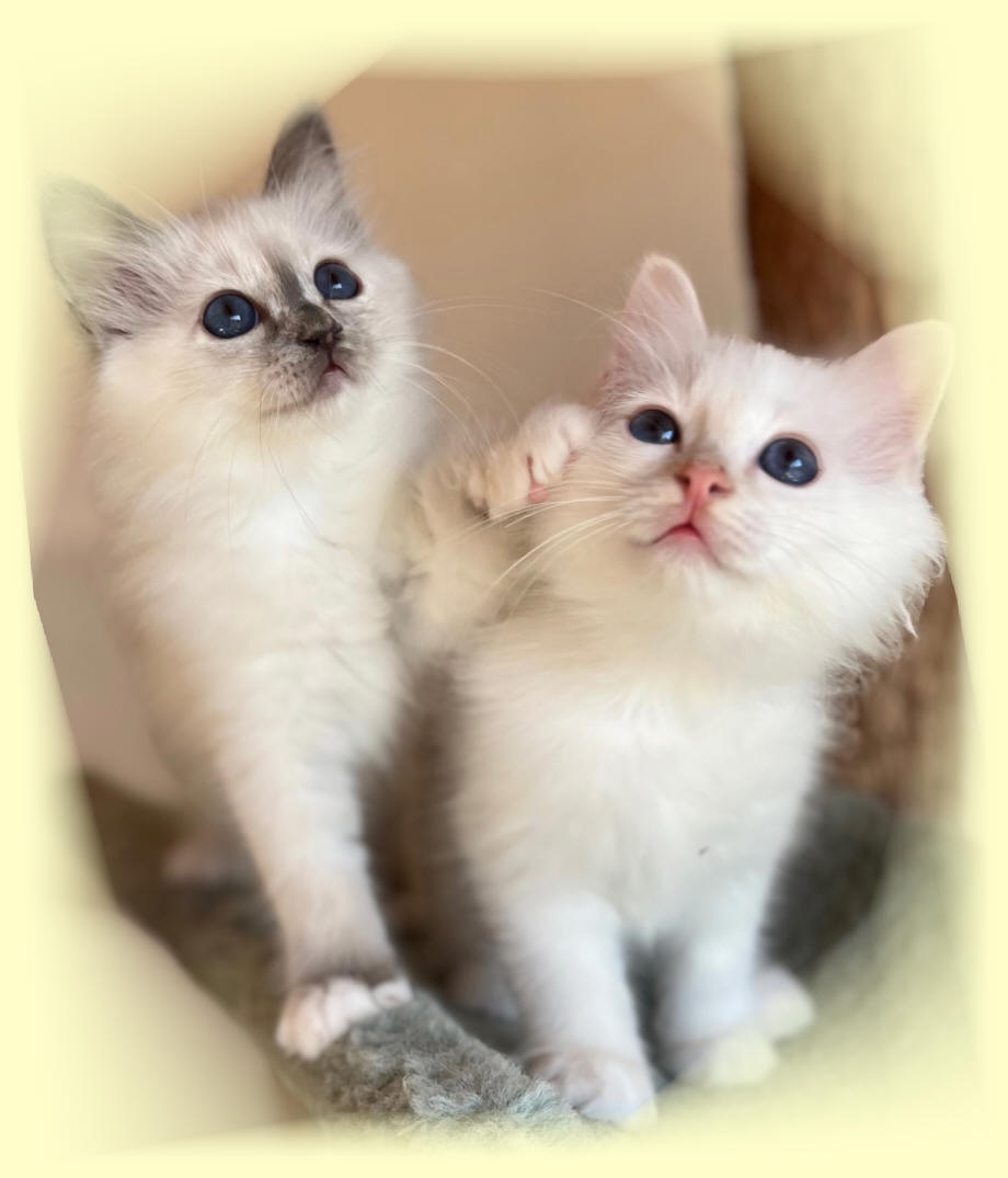 Es sind ein Mädchen und zwei Kater mit schönen Geburtsgewichten. Da eine Plazenta verblieben war, hatten wir ein paar Anfangsschwierigkeiten mit der Gewichtzunahme der Babys.